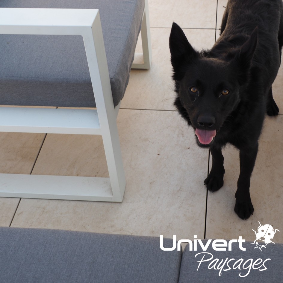 Aménagement paysager Divonne Pays-de-gex Univert Coccinelle piscine terrasse grès cérame abri mur plantations fruitiers (19)