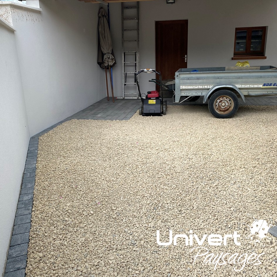 Le pavage en pierre naturelle propose de nombreuses versions selon la pierre choisie (granit, grès, calcaire, etc.). Chez Univert, nous vous proposerons toujours en premier lieu une pierre provenant d’une carrière Française. D’une part, celle-ci formera une belle harmonie avec le paysage environnant, d’autre part, son impact carbone en terme de transport est réduit, et enfin, les conditions sociales au sein des carrières Françaises collent aux valeurs de l’entreprise.