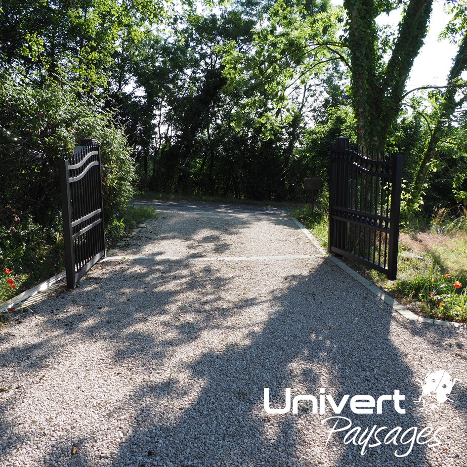 Les gravillons sur plaques stabilisatrices alvéolées sont la solution la plus perméable, tout en restant bien au propre.