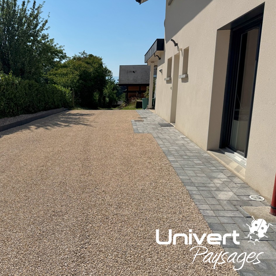 Découvrez ici les réalisations de cours et allées en pavage de votre paysagiste Pays de Gex, Univert Paysages.