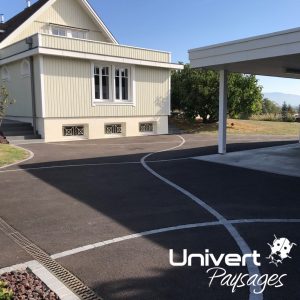 parking stationnement cour de maison entrée en enrobé bitume goudron paysagiste pays-de-gex univert-paysages